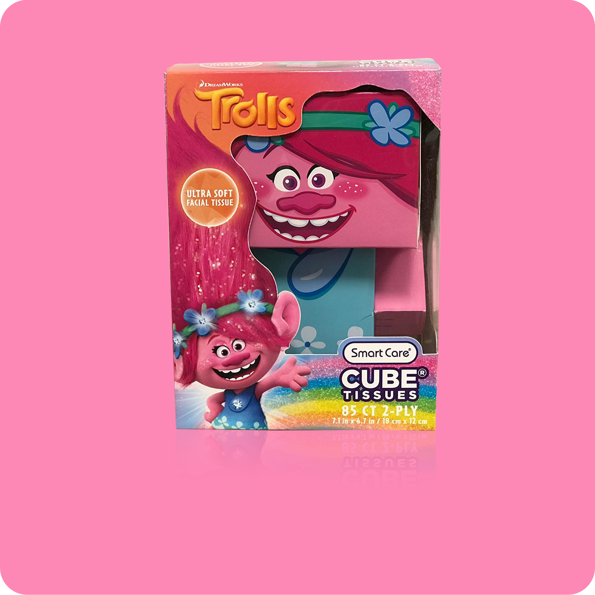 • Facial tissue cube box in a variety of colors, designs and Characters